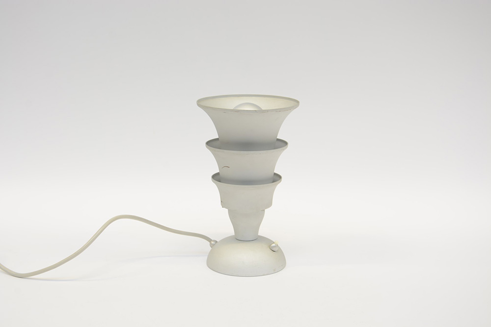 Matteo Thun Bolzano (1952- ) Lampada da tavolo modello "Hollywood". Produzione Tronconi, anni 80. Alluminio verniciato grigio (h cm 25,5) (lievi difetti)