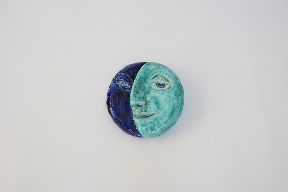 Antonio Siri "Luna" formella in terracotta blu e turchese. Albisola, 1956. Firmata e datata (d cm 18) (lievi difetti)