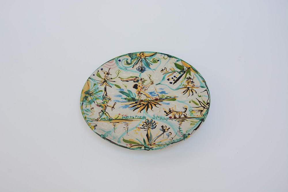 Antonio Sabatelli Piatto decorato nei toni del verde, del giallo e del blu, Isola Ceramiche Albisola, anni 60 del sec XX (d cm 26)