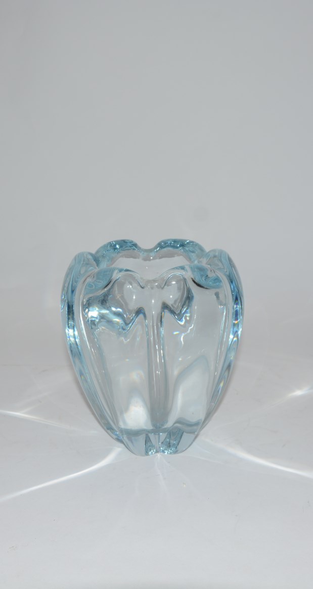 Orrefors Vaso costolato in vetro massello costolato azzurrino. Svezia,...
