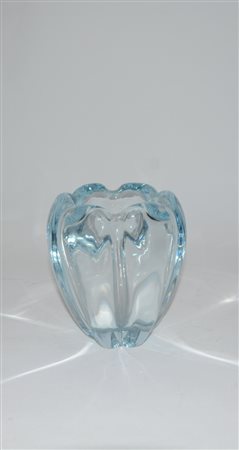 Orrefors Vaso costolato in vetro massello costolato azzurrino. Svezia, seconda met‡ del sec XX. Firmato e numerato a punta alla base (h cm 18)