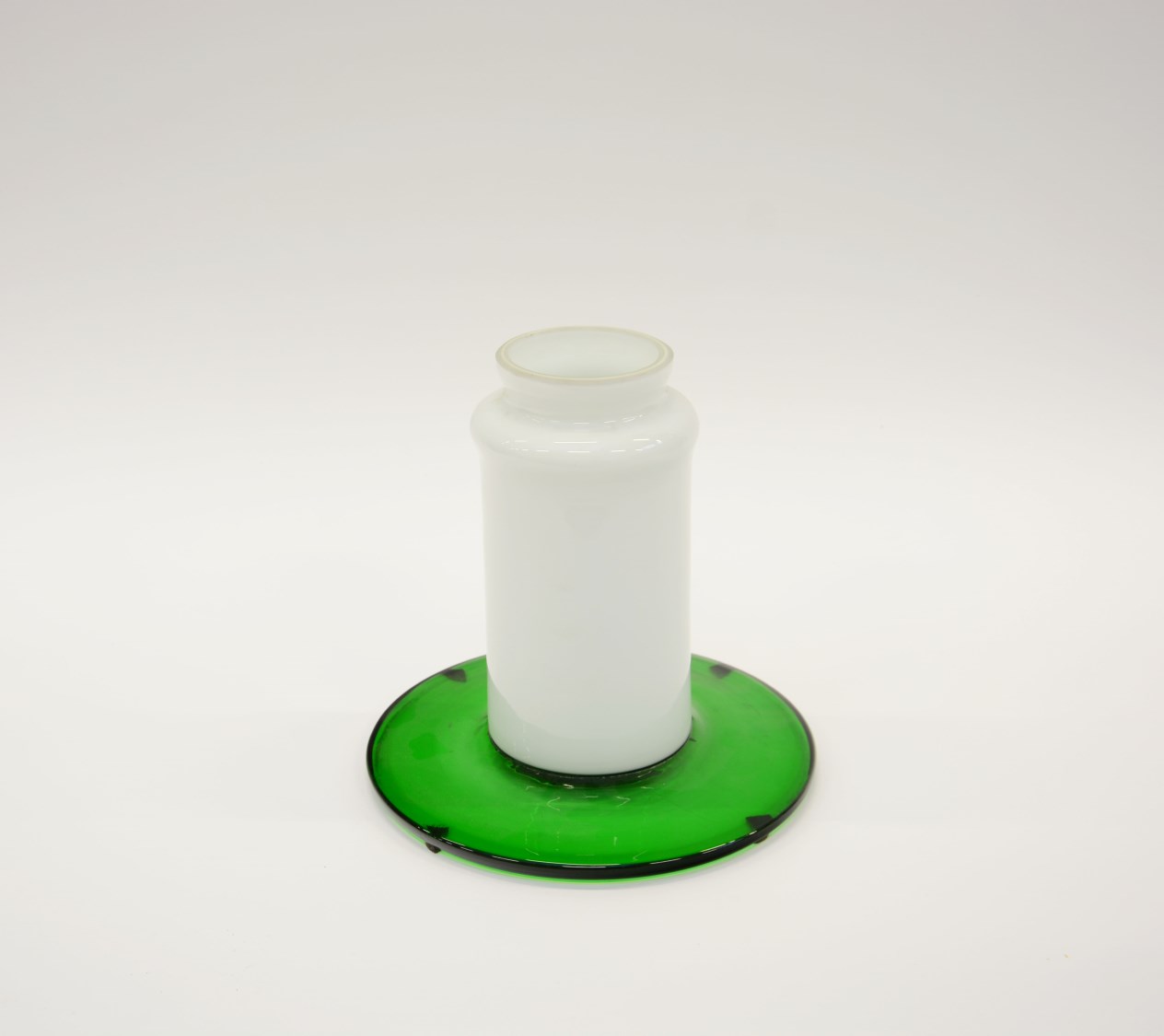 Ettore Sottsass (attr.) * Parte di lampada da tavolo modello "Limante". Vetro incamiciato bianco e base incollata in vetro verde trasparente. Produzione Vistosi, Italia, 1977 ca. (h cm 24,5)