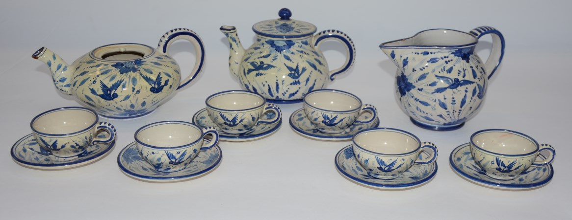 Manifattura Santarelli, Gualdo Tadino Parte di servizio da tË e caffË in ceramica decorata nei toni del blu cobalto (difetti e restauri)
