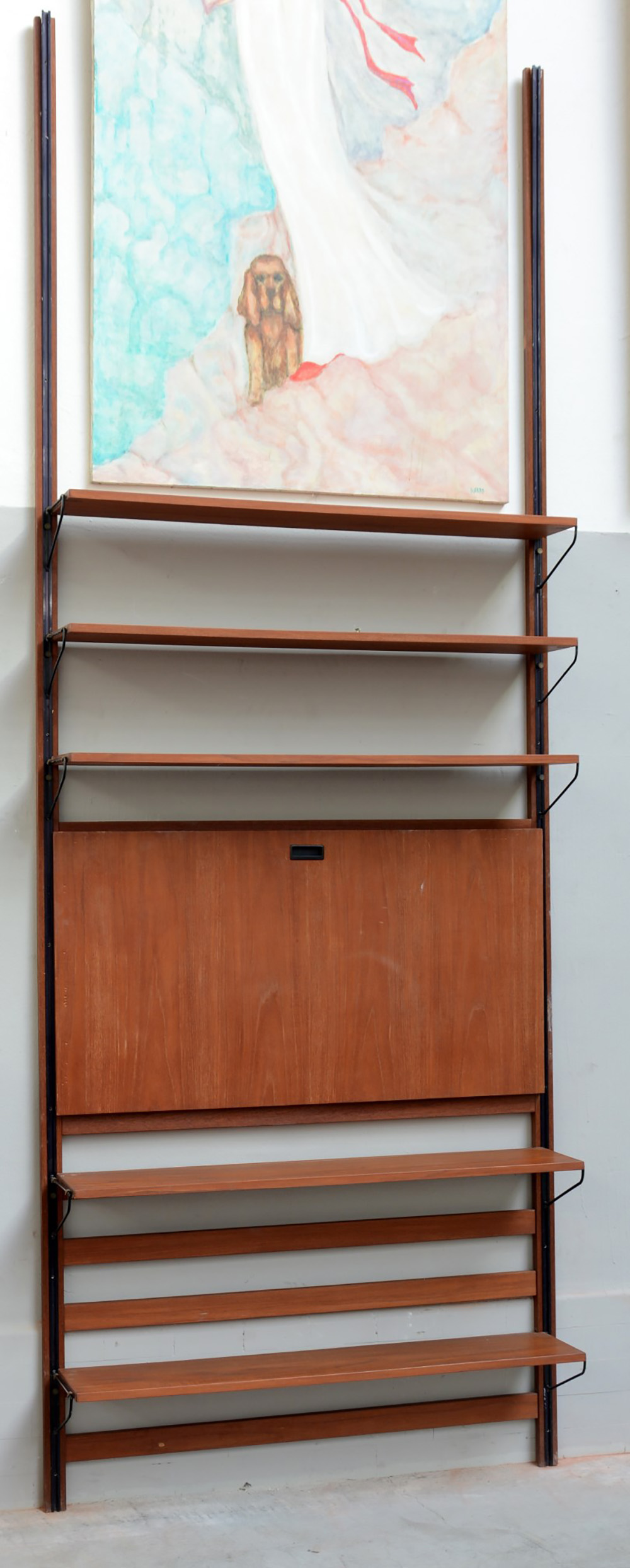 Lotto 745 | Libreria con montanti in metallo e ripiani impiallacciati in legno. Italia,...