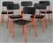 Lotto di sei sedie in tubolare metallico smaltato arancio con seduta in multistrato e laminato nero. Italia, anni 70 (h cm 77) (difetti)