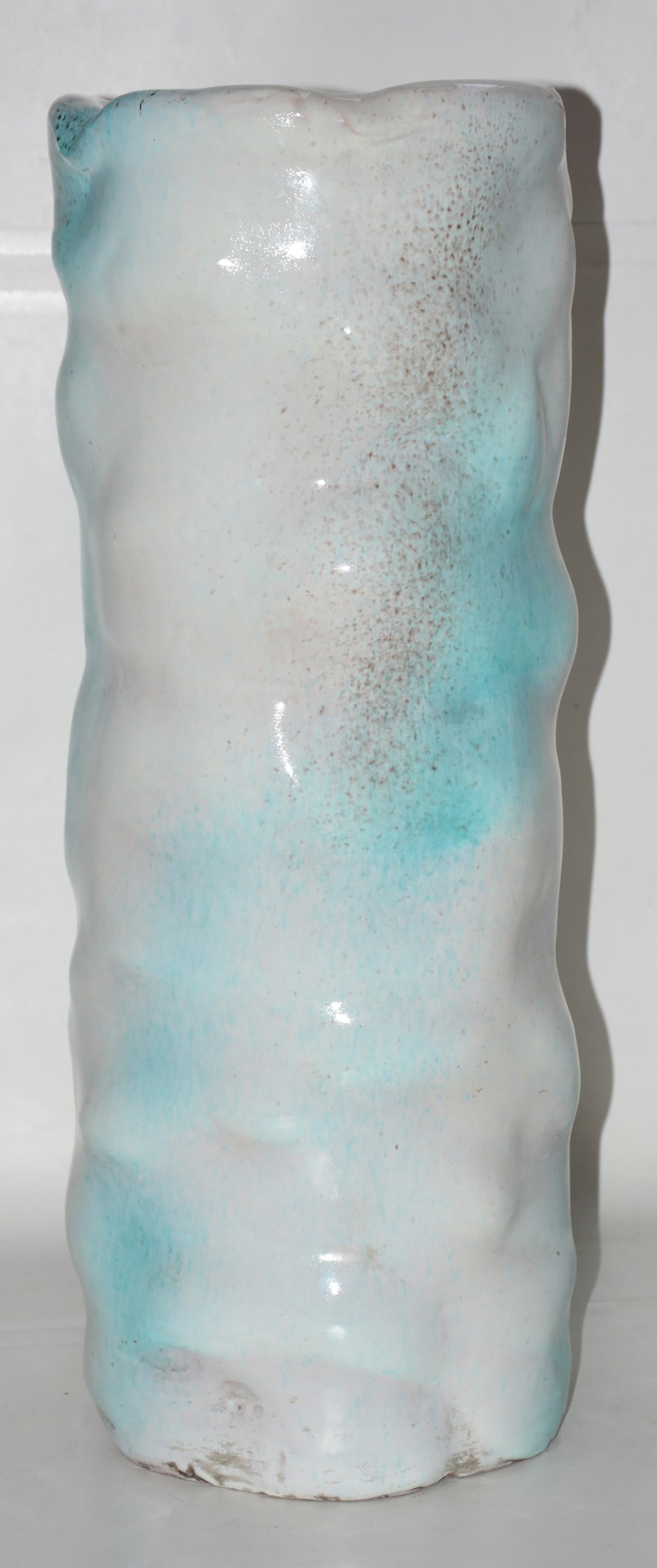 Portaombrelli in ceramica smaltata coloro bianco/azzurro. Italia, fine anni 60 (h cm 61)(difetti)