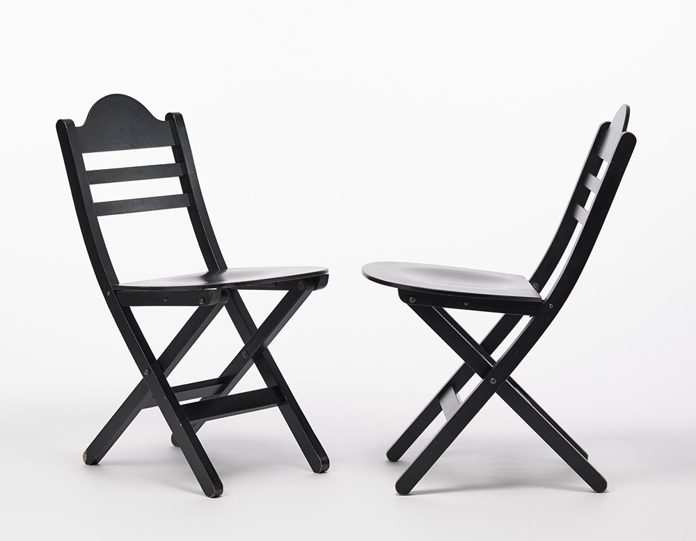 Lotto 760 | Carla Venosta (attribuito) Coppia di sedie pieghevoli in legno verniciato...