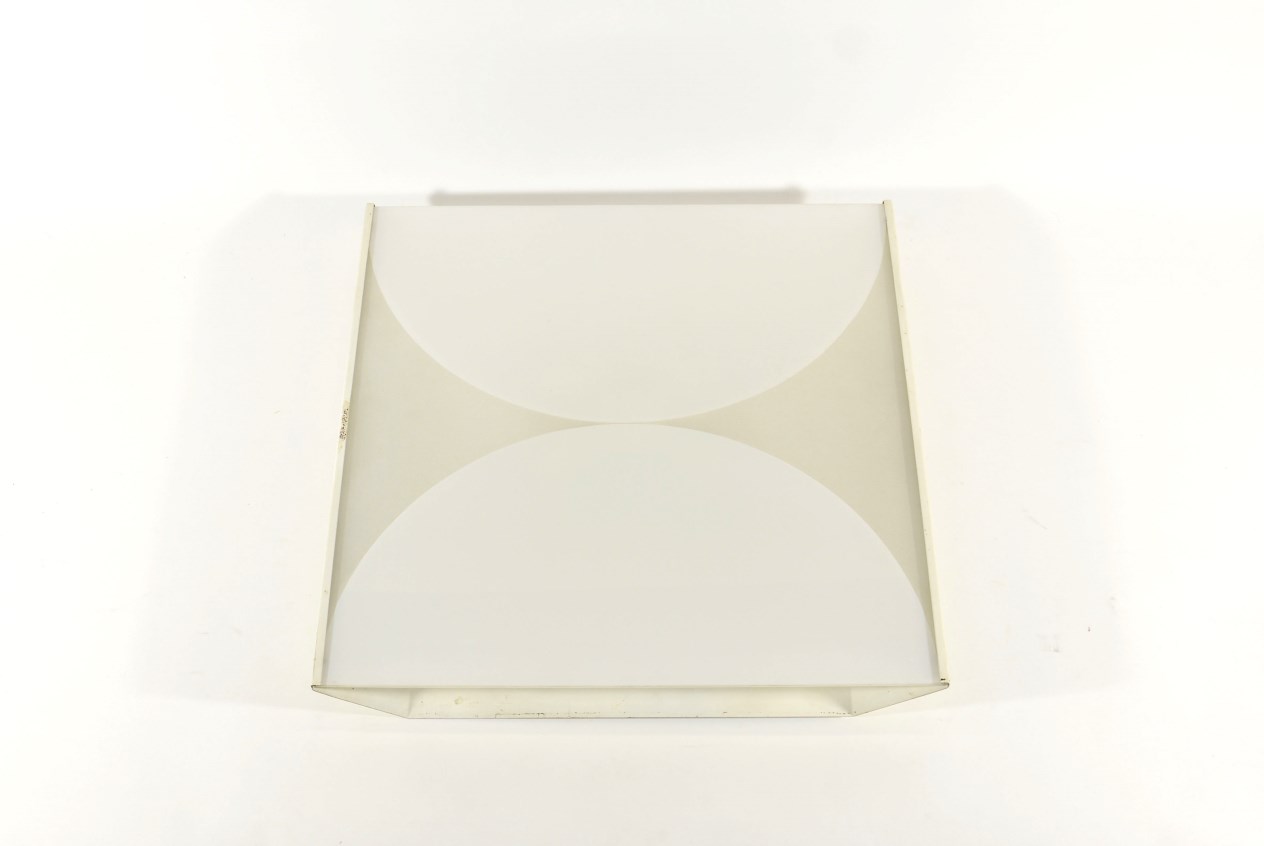 Bobo Piccoli Milano (1927- Milano 1981) Lampada da parete modello "Clessidra". Produzione Fontana Arte, Milano, anni 70. Struttura in metallo verniciato e diffusore in vetro lattimo e smerigliato (cm 50x50x7) (lievi difetti)