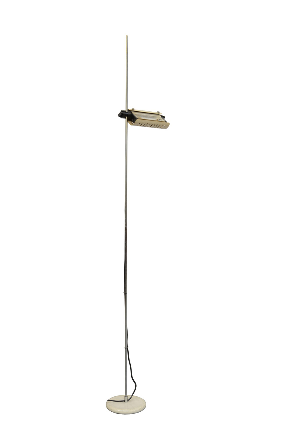 Joe Colombo Milano (1930- 1971) Lampada da terra modello "626" con base e paralume in metallo laccato bianco e struttura cromata. Produzione O-Luce, anni 70 (h cm 210) (lievi difetti)