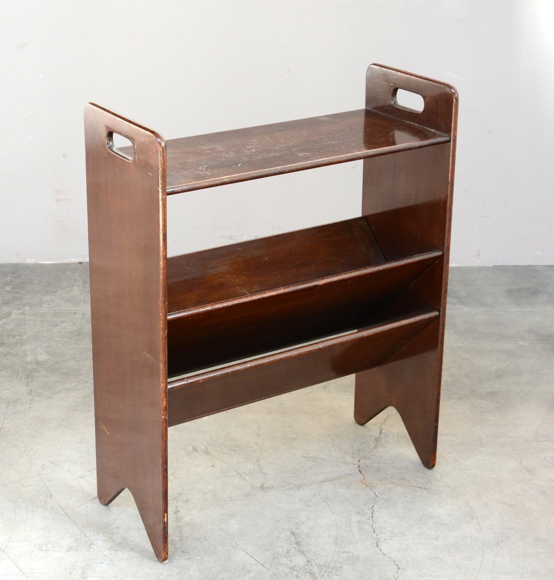 Portariviste in legno con montanti traforati. Italia, sec XX (cm 60x75x24) (difetti)