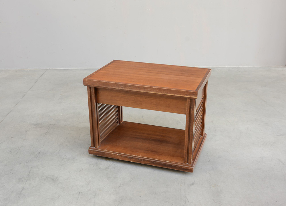 Lotto 784 | Mobiletto in legno con un cassetto, vano a giorno e ghiera laterale (cm...