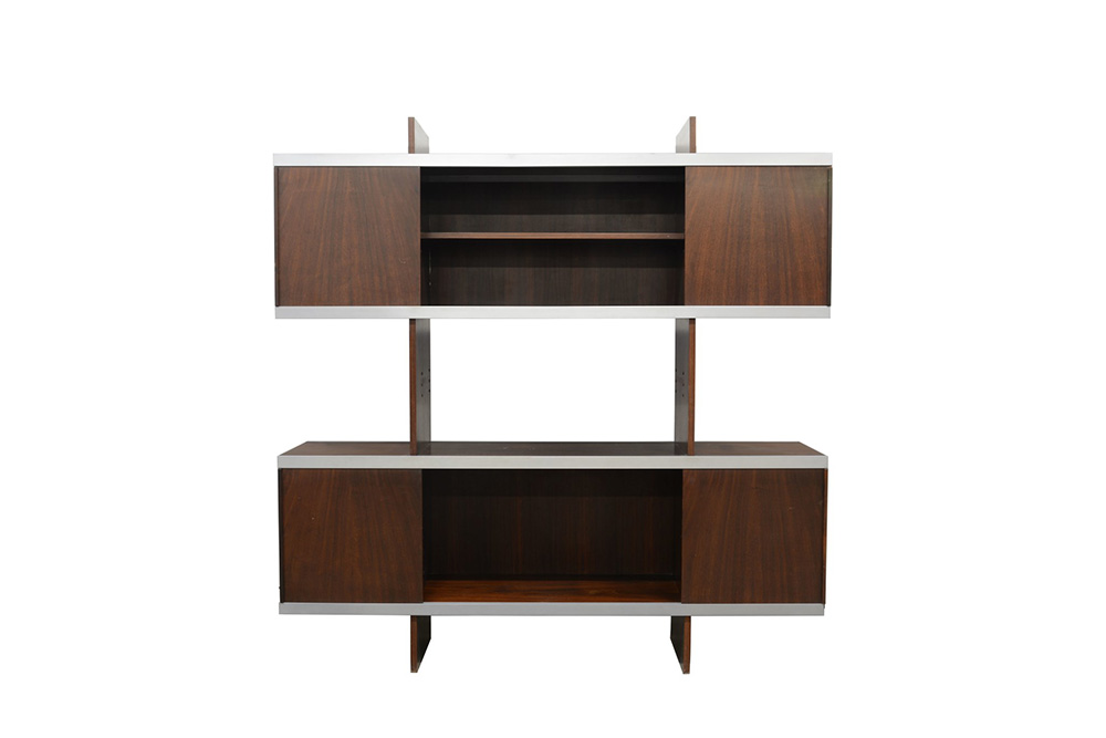 Angelo Mangiarotti (1921- 2012) Libreria modello "Multiuse". Produzione Poltronova, disegno del 1965, esemplare del 1969. Legno impiallacciato in palissandro indiano, profilati in alluminio anodizato, ante a scorrimento (cm 194x198x46) (difetti) Bibliografia: "Domus", n. 428, luglio 1965, p. 36; "Domus" n. 440, luglio 1966, p. 78; "Domus" n. 454, settembre 1967, pubblicit‡; P. C. Santini, Facendo mobili con Poltronova, Artigraf, Firenze, 1977, p. 63; G. Gramigna, Repertorio del design italiano 1950-2000 per l'arredamento domestico, Allemandi, Torino 2003, p. 119; F. Burkhardt, Angelo Mangiarotti. Opera completa, Motta, Milano 2010, p. 254