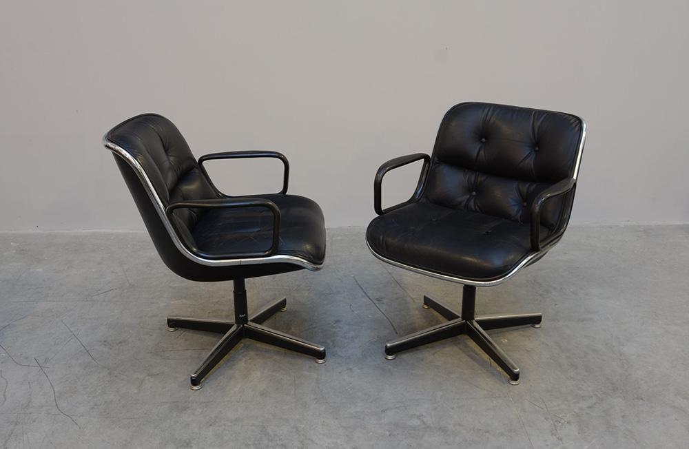 Charles Pollock Denver (1902- Parigi 1988) Coppia di poltroncine direzionali. Produzione Knoll International, disegno del 1965, esecuzione anni 70. (cm 65x80x65) (lievi difetti)
