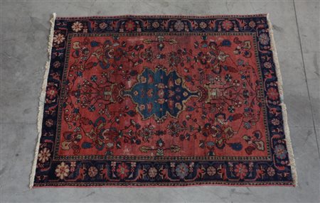 Coppia di poltrone imbottite rivestite in tessuto rosso. Gambe metalliche. Italia, fine anni 60 del sec XX (cm 82x90x80) (lievi difetti)