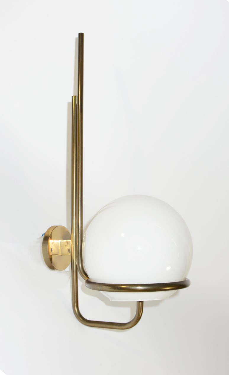 Applique in ottone con diffusore sferico in vetro incamiciato opalino....