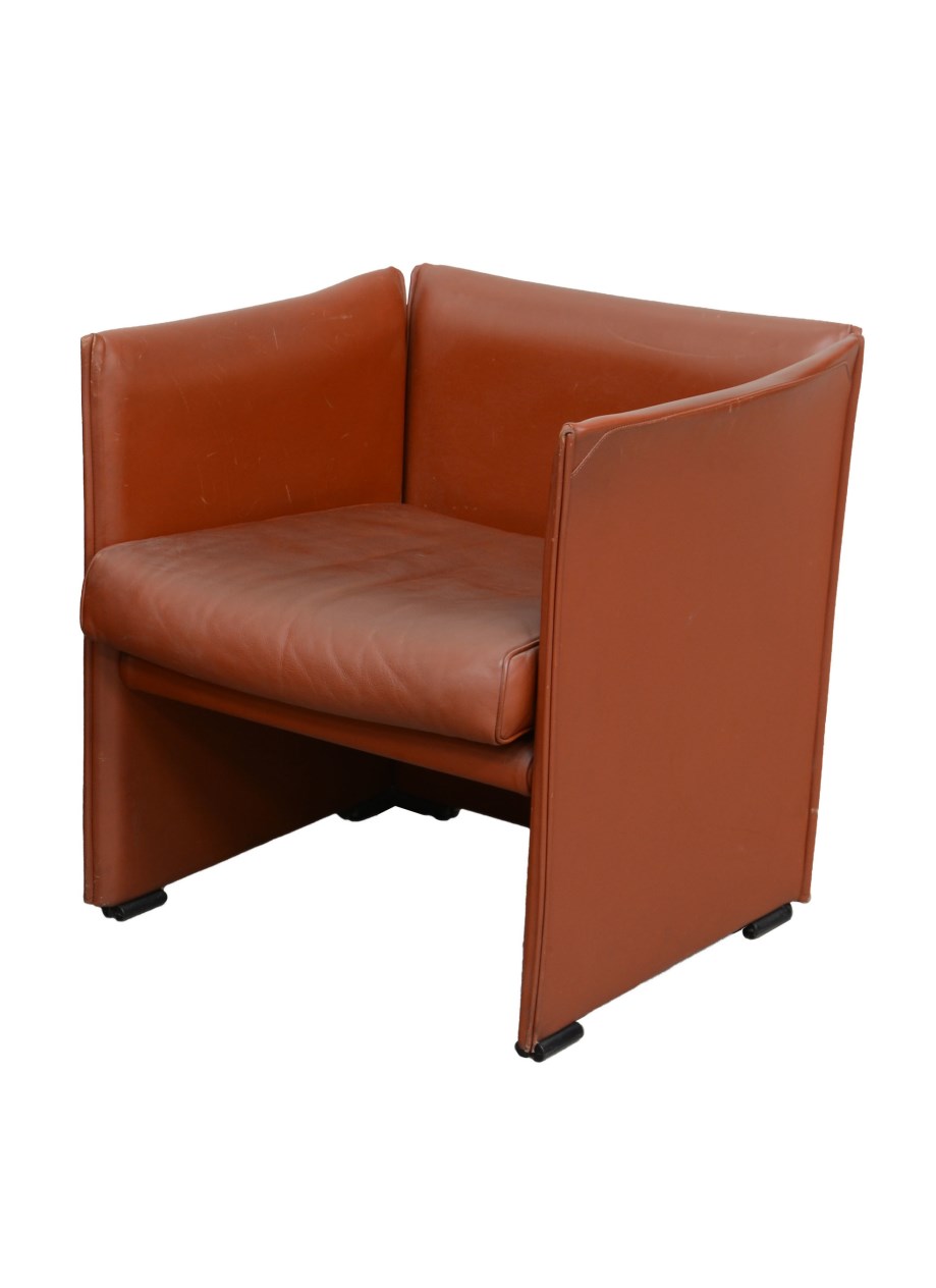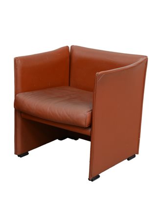 Mario Bellini (1935- ) Poltrona modello "405 Duc". Produzione Cassina, Meda 1976. Rivestimento in pelle terra bruciata (cm 62x66x60) (lievi difetti)
