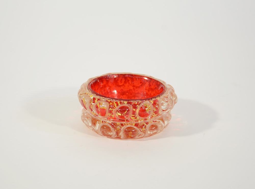 Barovier & Toso Piccola ciotola della serie "Lenti", in vetro rosso a bolle con inclusione di foglia d'oro. Seconda met‡ del sec XX (h cm 5 d cm 10) (difetti)