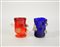 Barovier & Toso - I Goti de fornasa Lotto composto da due vasi in vetro rosso e blu con applicazioni raffiguranti foglie. Firmati a punta sotto la base (h cm 13)
