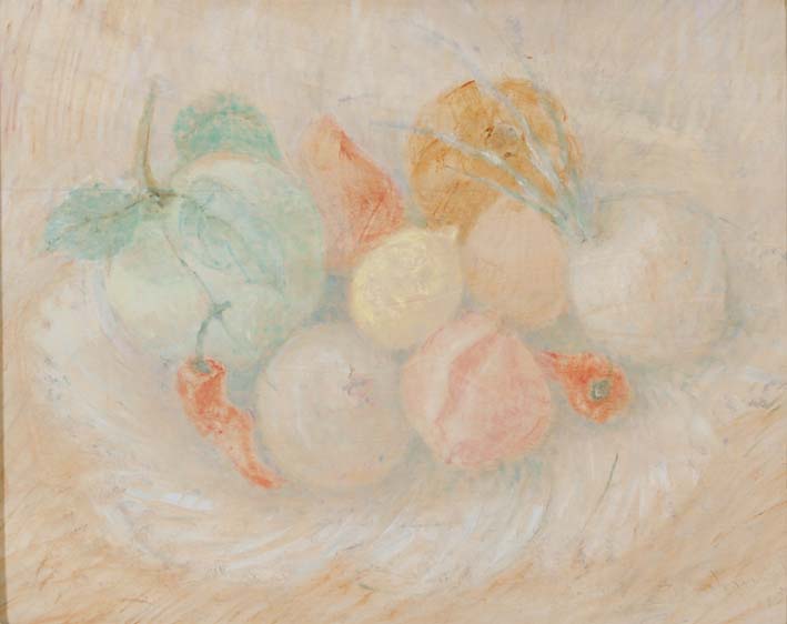SEMEGHINI PIO Quistello 1879 - Verona 1964 Natura Morta 1952 olio su tavola Misure: 30,5x40 firma e data in basso a destra provenienza già collezione Giovanardi Modena - al verso Buranella 1952