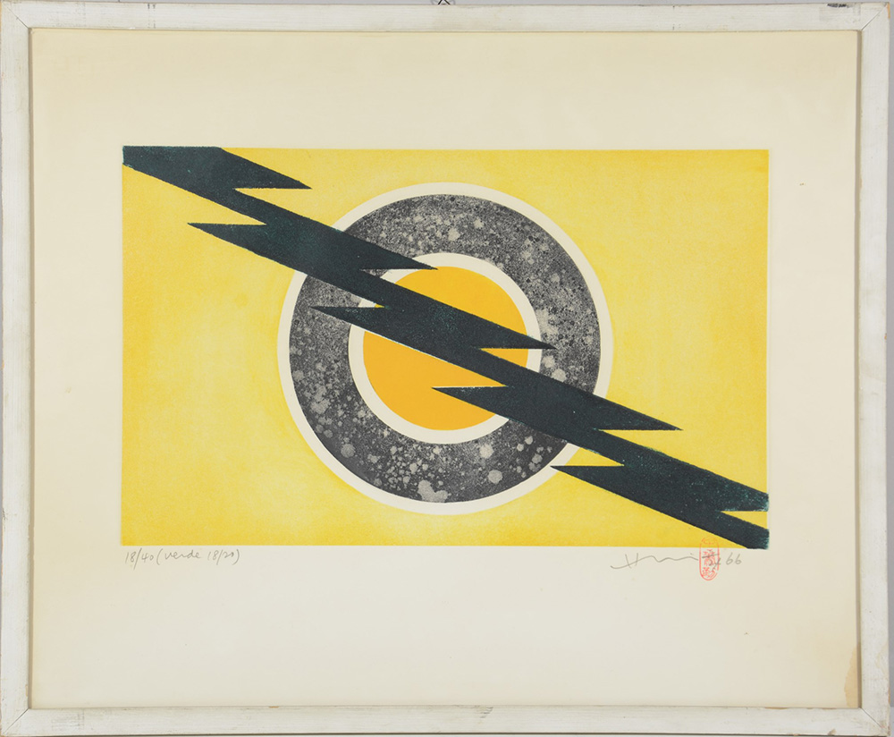 Hsiao Chin. "Composizione" '66, acquaforte a colori (cm 50x60 il foglio) firmata e datata in basso. In cornice (difetti)