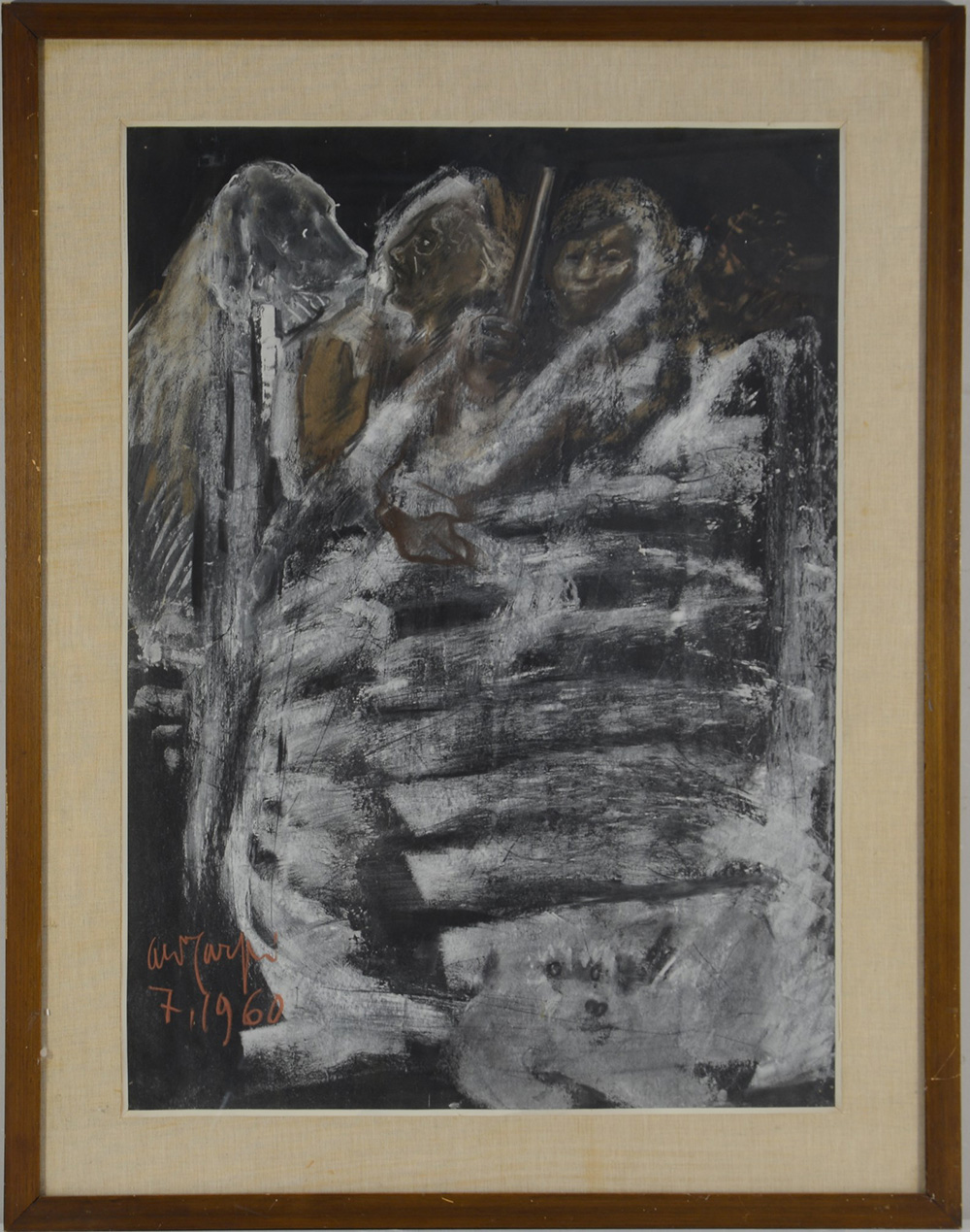 Lotto 1036 | Aldo Carpi "Figure 1960". Pastelli colorati su carta (cm 75x55). Firmato in...
