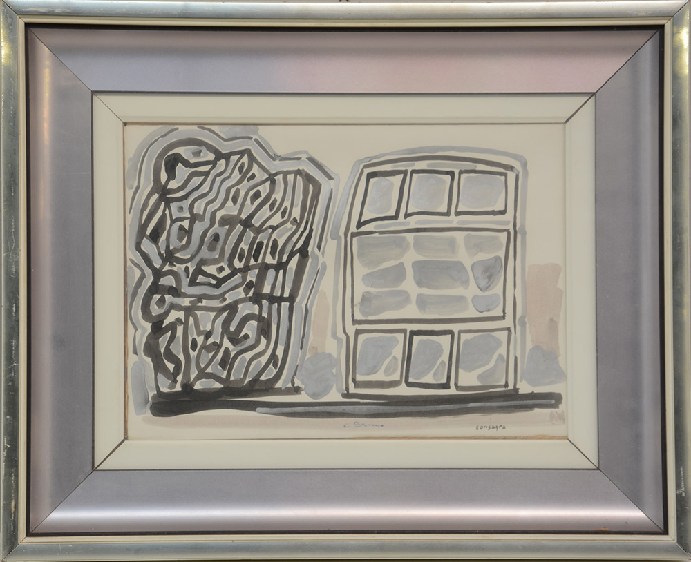 Consagra "Studio" tecnica mista su carta intelata (cm 25x35). Firmato in basso a destra. Provenienza: Asta Finarte catalogo 443, nr.73, 23 luglio 1985. Si allega verbale di perizia nr.4253 di Finarte su fotografia, timbro della Galleria Ghelfi, Verona al verso.In cornice (lievi difetti)