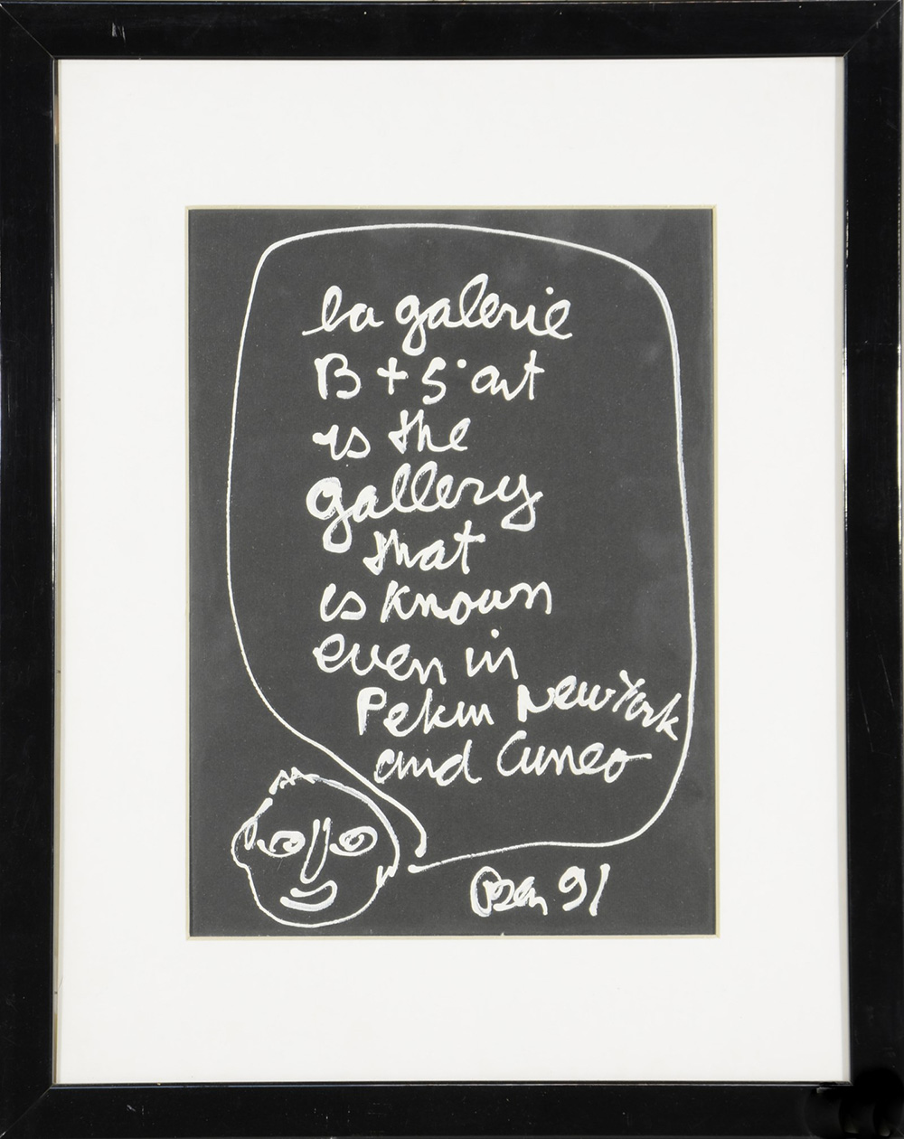Ben "Le Galerie B+5 Art is..." 1991, tecnica mista su carta applicata su...