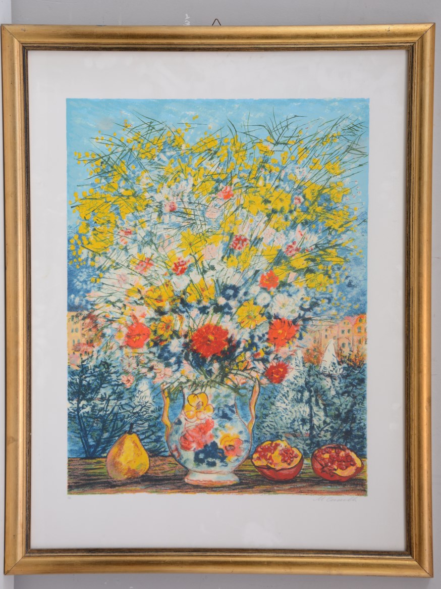 Cascella. M. "Vaso con fiori" prova d'artista firmata in basso a destra. In cornice