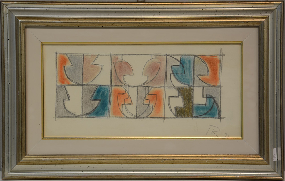Hans Richter. "Composizione '1971" tecnica mista su carta applicata su tela (cm 16x34) firmata e datata in basso a destra, provenienza asta Finarte, cat.508, nr.398 si allega verbale di perizia nr.4171 del 1985. In cornice