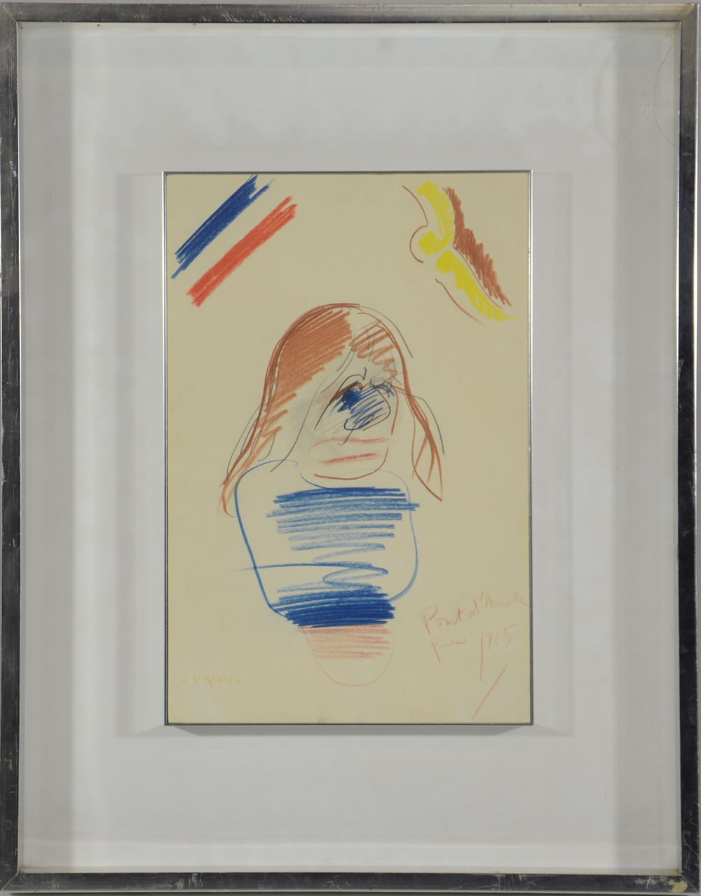 Arroyo "Composizione" 1965, pastelli su carta (cm 36x23). Firmato in basso a sinistra, iscritto e locato Paris in basso a destra
