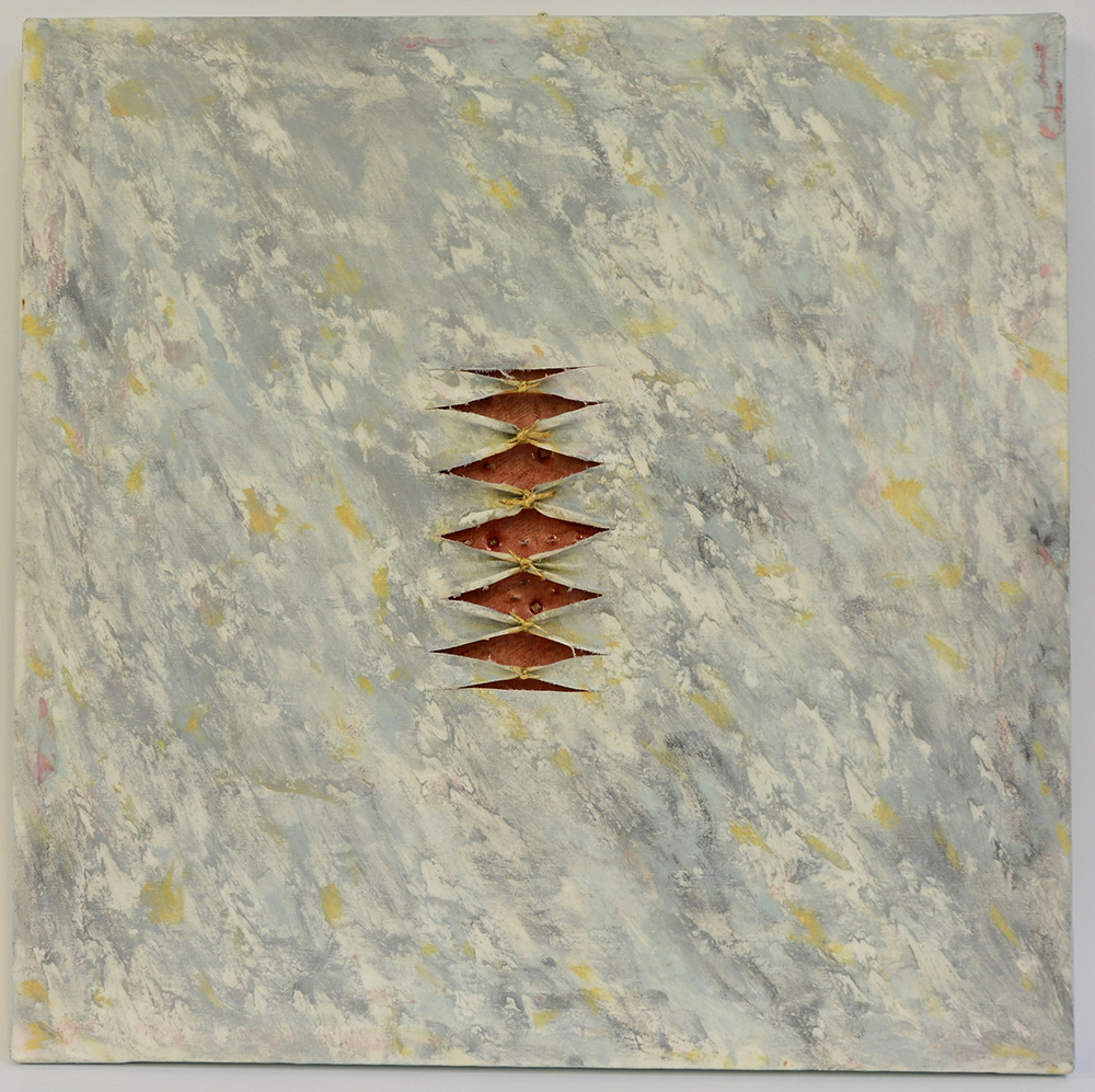 Calogero Salemi Racalmuto (1966- ) "Squarci di arancione" smalto e acrilico su tela (cm 52x52) firmato e titolato al verso