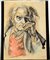 Guttuso "Ritratto di Moravia" tecnica mista su carta (cm 34,5x24) firmato in basso a destra