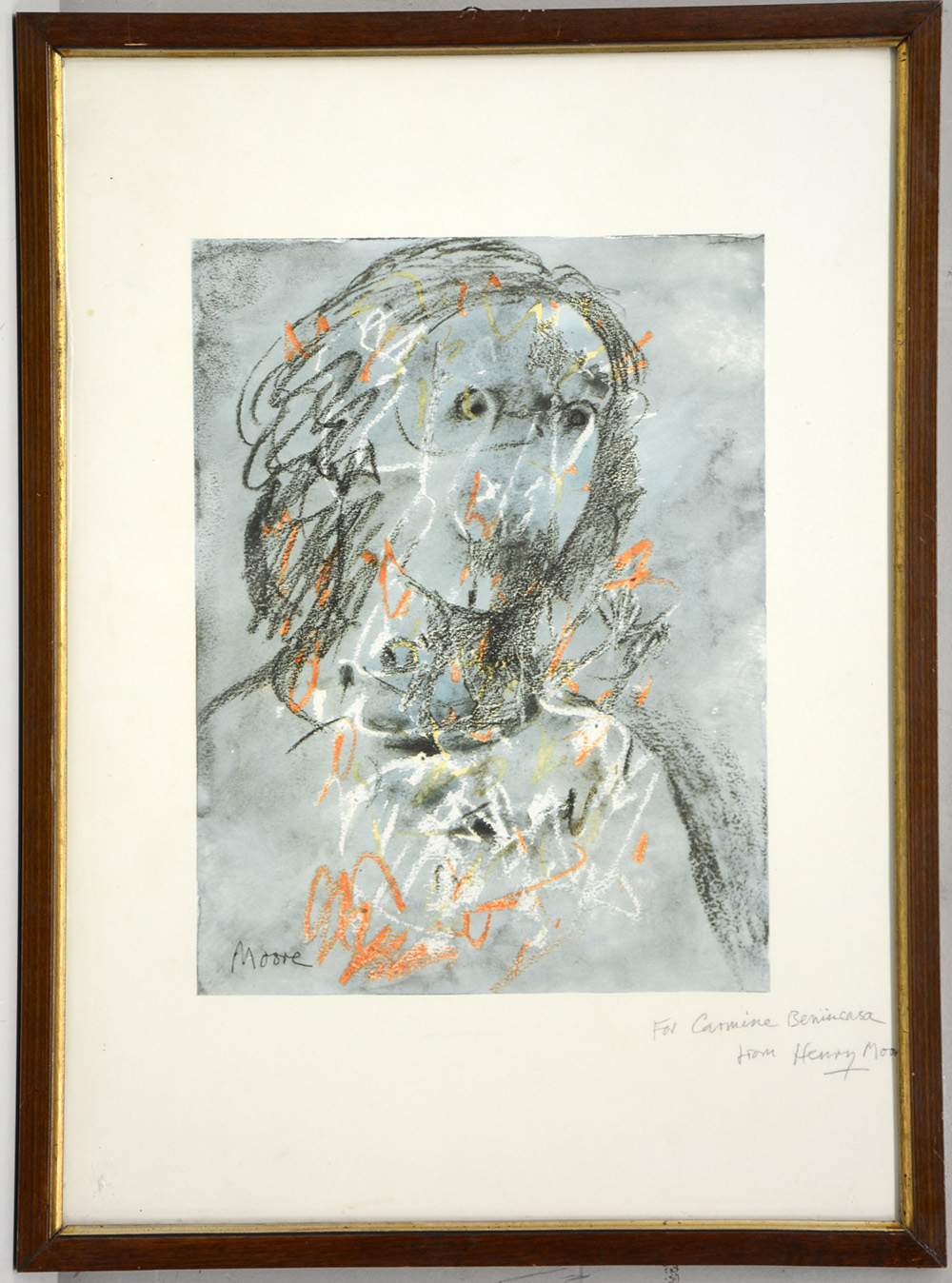 Henry Moore Castleford (1898- Much Hadham 1986) "Senza titolo" stampa (cm 51x36,5 il foglio) firmata e dedicata in basso a destra. In cornice