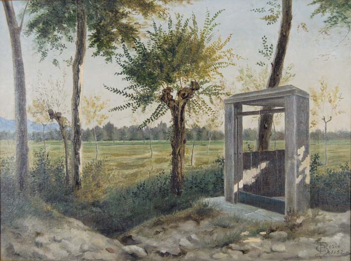 BOSIO GIOVANNI BATTISTA Brescia 1873 - 1945 Paesaggio 1892 olio su tela Misure: 45x60 firma e data in basso a destra autentica certificato di garanzia della Meeting Art Vercelli