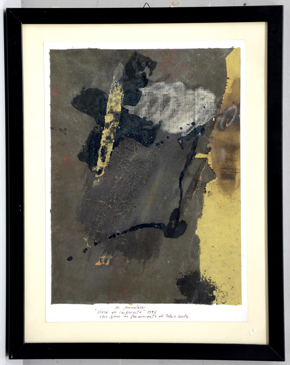 Mondazzi "VivrÚ di impronte" 1995, tecnica mista su tela e carta (cm 32x24) firmato, datato e titolato in basso. In cornice†