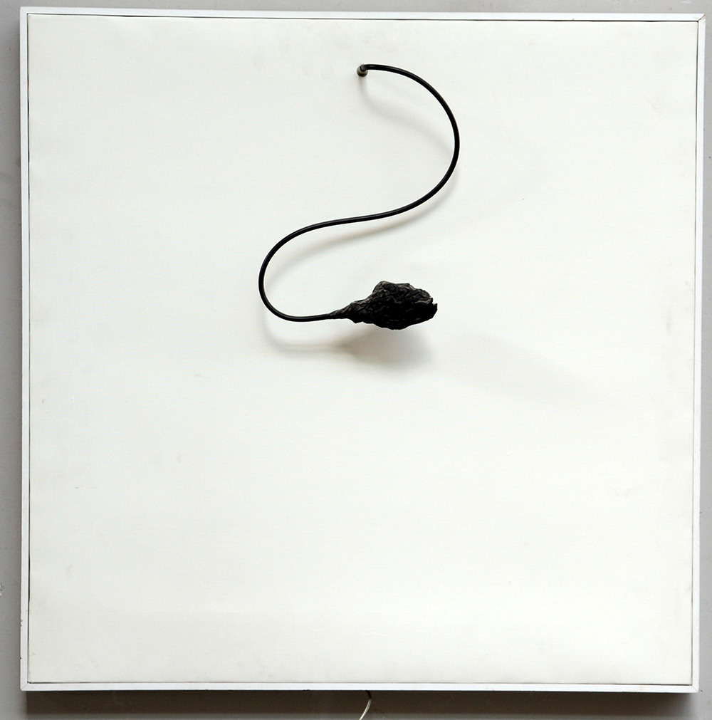 Enzo Catellani (1950- ) "Luce che dipinge" installazione luminosa su tela (cm 70x70). Firmata e titolata al retro (lievi difetti)