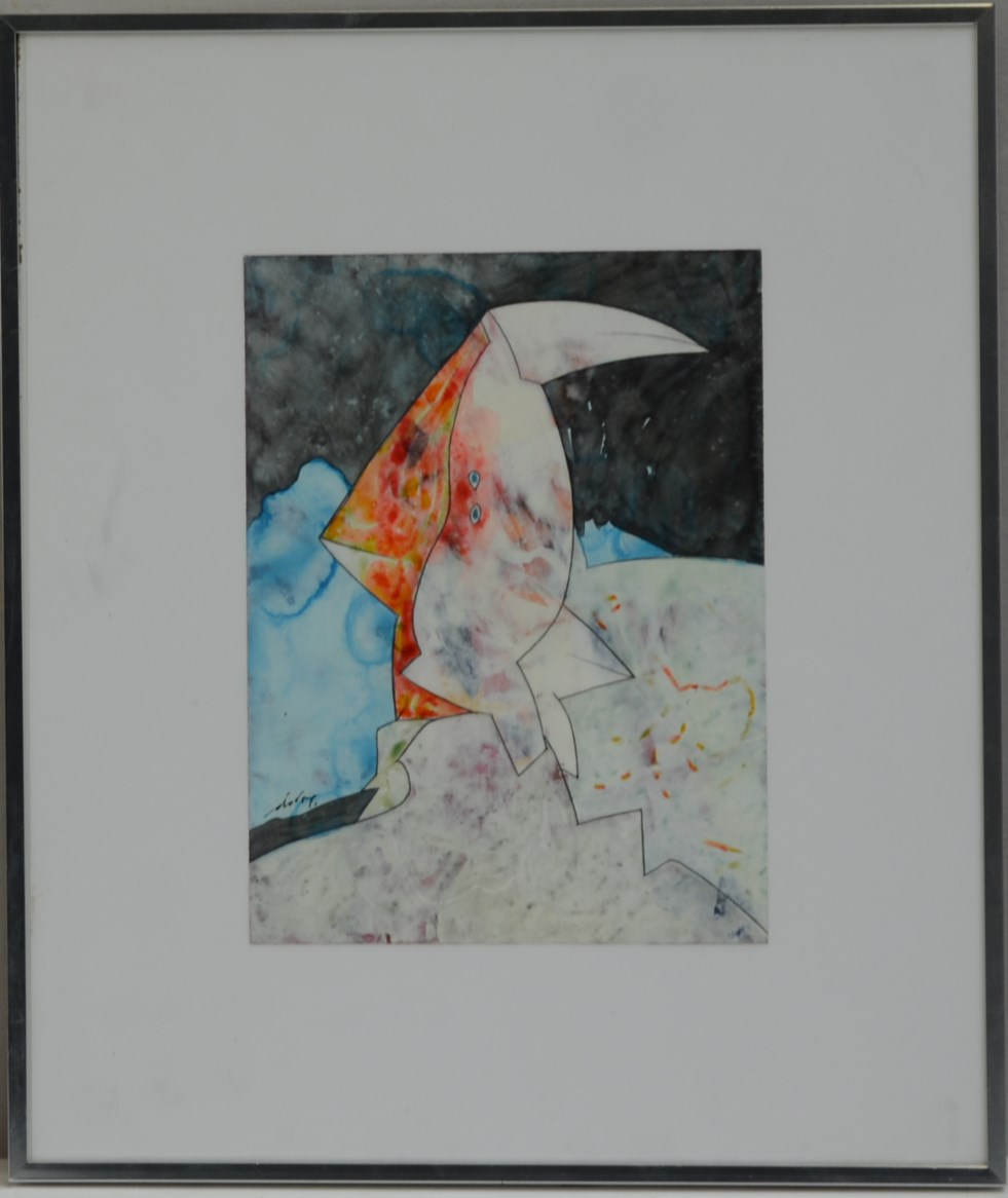 Dova Ignoto "Senza titolo" tecnica mista su carta (cm 23,5x17,5) iscritto "Dova" in basso a sinistra. In cornice