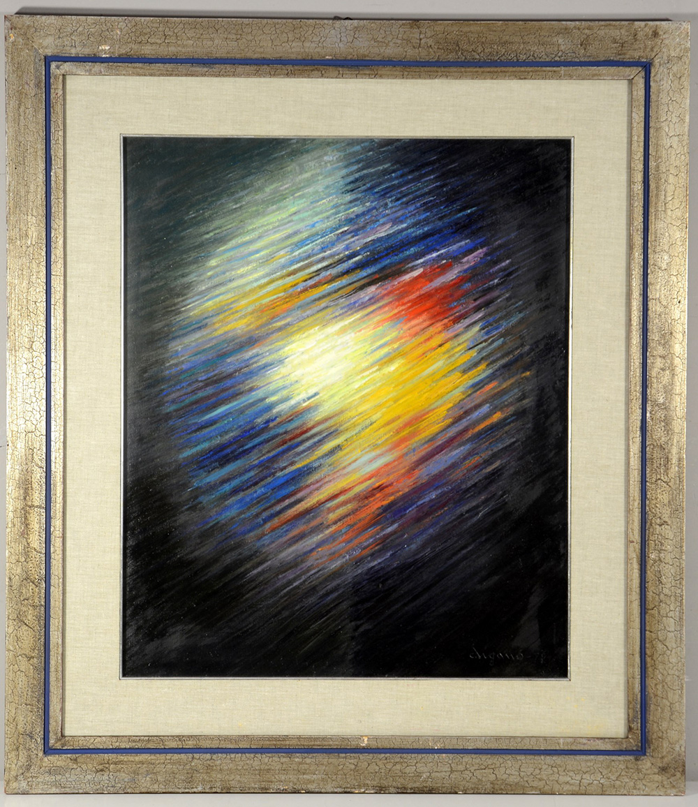 Vigano. "Senza titolo" 1972, olio su tela, cm 60x50, firmato e datato in basso , firmato e datato al retro
