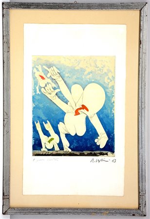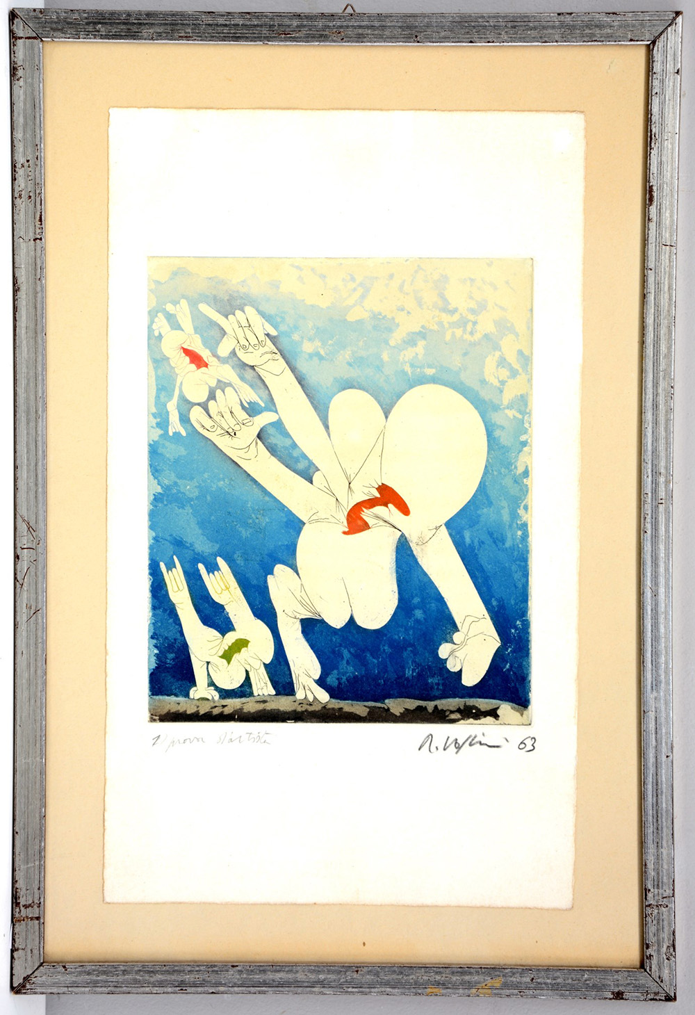 Volpini Renato "Senza titolo" 1963, incisione (cm 50x30 il foglio) prova d'artista, firmato, datato e numerato in basso. In cornice