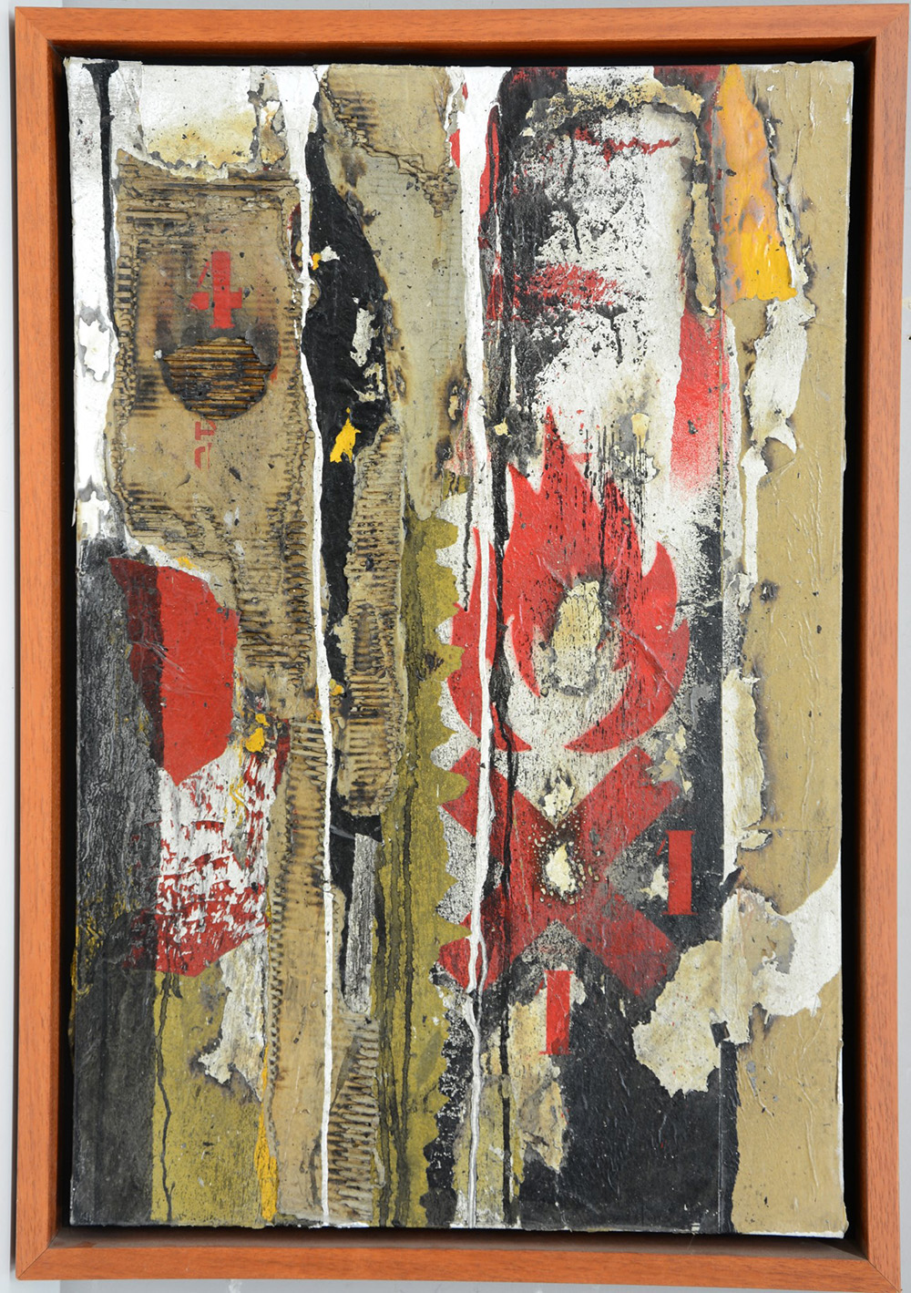 Rae Martini (Marino Martini) Milano (1976- ) "Fantastic materic" 2008, tecnica mista e collage su tela (cm 90x60) firmato, datato e titolato al verso. Si allega autentica su fotografia firmata dall' artista In cornice (lievi difetti)