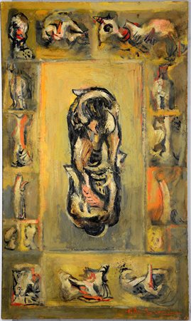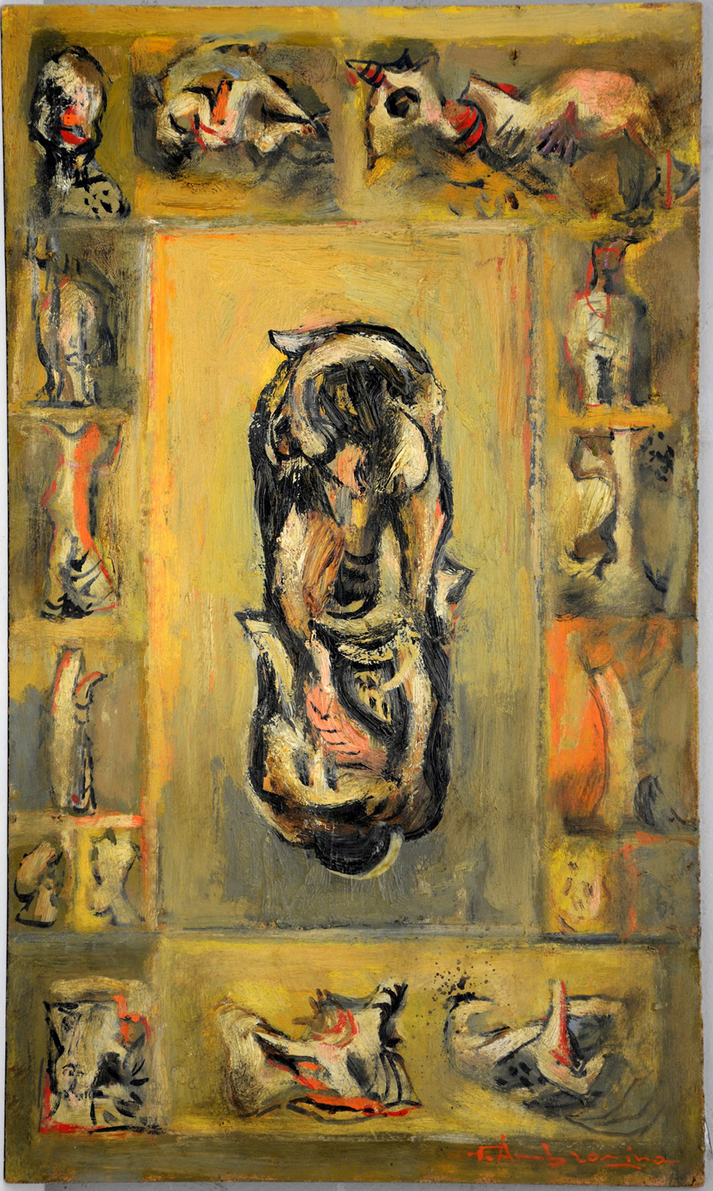 Ambrosino "Icona GX-98" 1998, olio su masonite (cm 48,5x29) firmato, datato e...