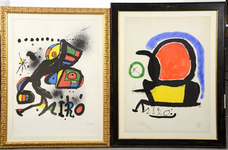 Mirò Lotto composto da due litografie a colori (cm 75x55 ciascuna). Entrambe firmate