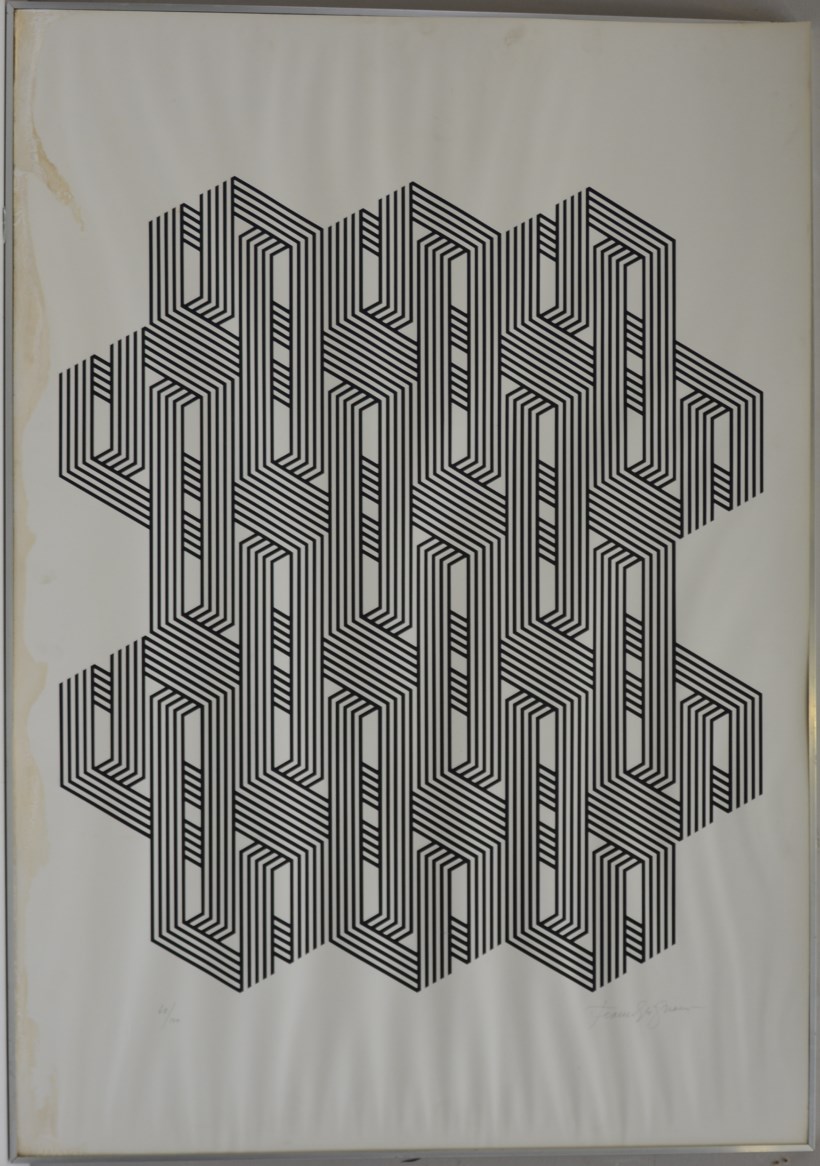 Grignani Franco Pavia (1908- Milano 1999) "Composizione" serigrafia (cm 98x70) esemplare 60/100, firmato e numerato in basso. In cornice (difetti)