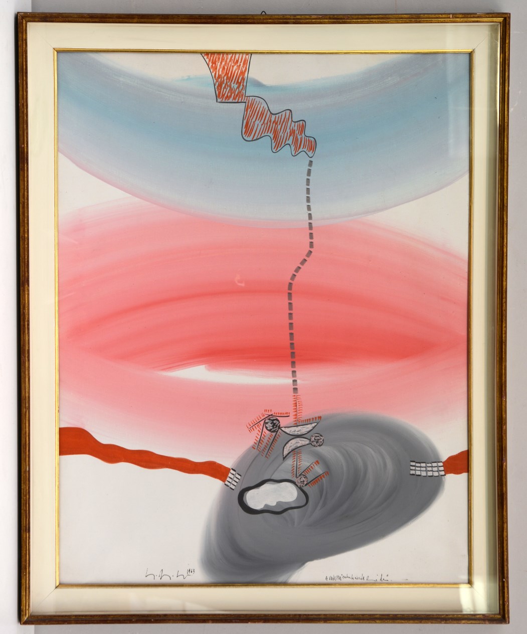 Sergio Dangelo. "A Vanessa" 1963, olio su tela (cm 90x70) firmato, titolato e datato in basso. In cornice