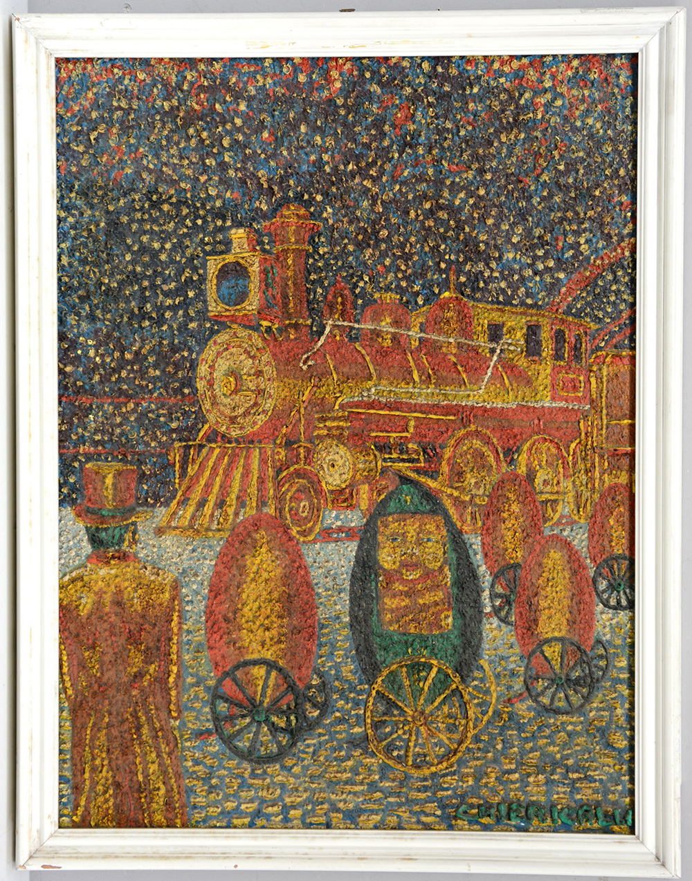 Lotto 1259 | Chiericalli "Locomotiva" olio su tela (cm 80x60) firmato in basso a destra....