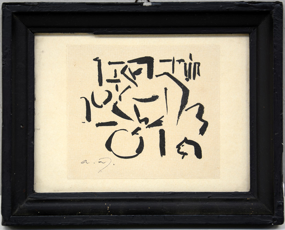 Ignoto "Composizione astratta" china su carta (cm 8,5x9,5) siglato in basso a sinistra. In cornice†
