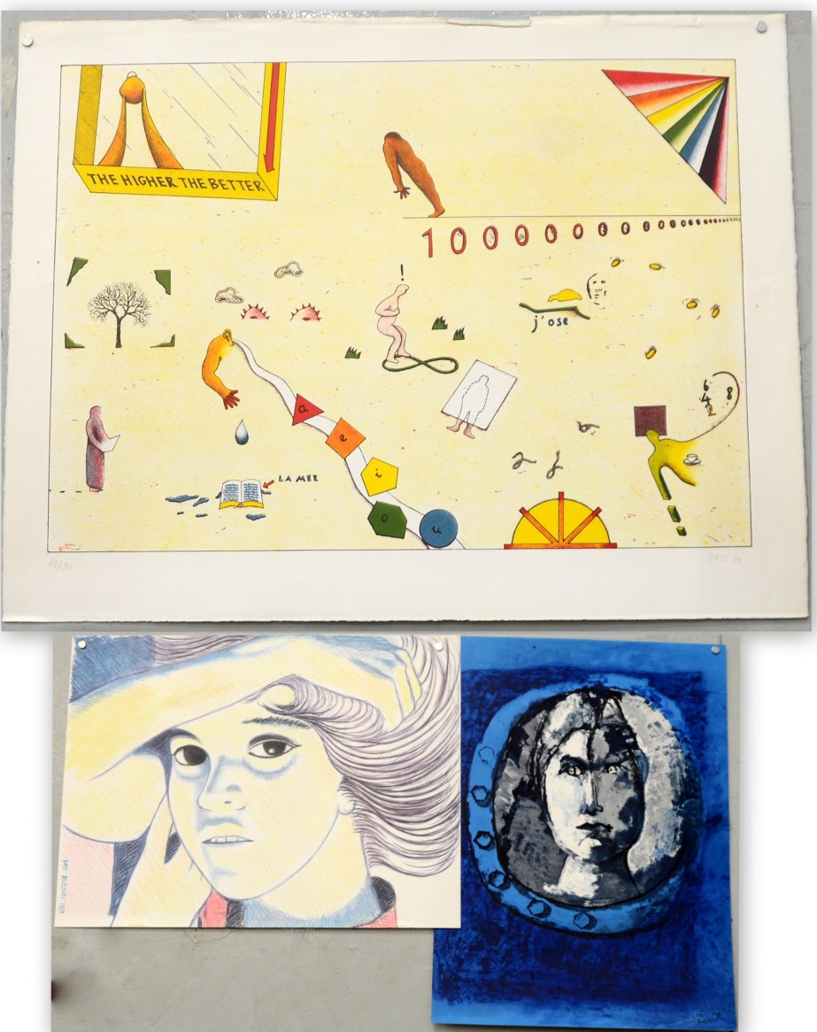 Cartella contenente una litografia, una serigrafia e alcune riproduzioni di autori moderni (lievi difetti)