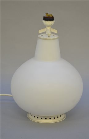 Max Ingrand (1908- 1969) Lampada da tavolo modello "1853". Produzione Fontana Arte, Milano 1954. Alluminio laccato bianco e vetro soffiato lattimo satinato (h cm 34) (difetti, mancanze e manomissioni)