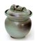 Vasetto in terracotta smaltata in grigio e verde con coperchio. Italia, anni...