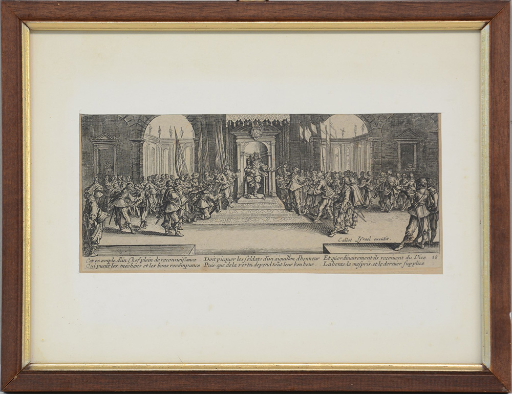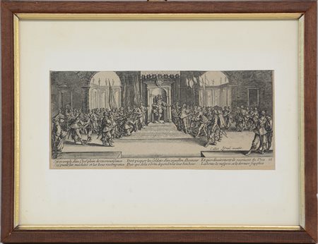 Callot Jacques "Regnante e figure" Incisione (cm 8x18). In cornice (difetti)